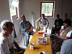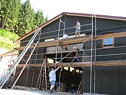 viele Helfer waren am 31.Okt.2009 wieder im Einsatz und haben die letzte Seite der Halle winterfest gestrichen. |